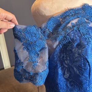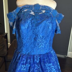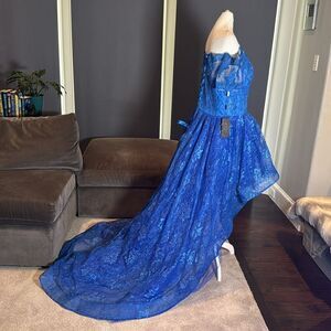 Women’s Blue High Low Off the Shoulder Party Dress Corset Back Size 18 NEW