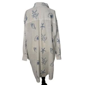 Women's Blue Island Blue/White Seashells Top Tunic 100% Cotton Sz 3XL