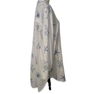 Women's Blue Island Blue/White Shells Top Tunic 100% Cotton Sz 3XL