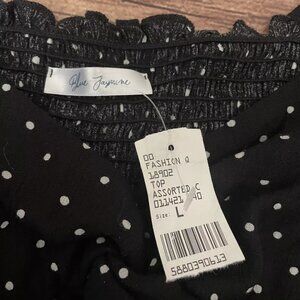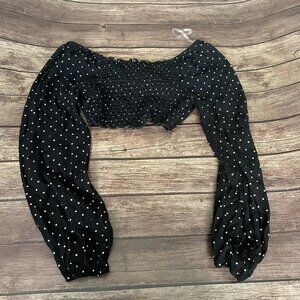 Women’s Blue Jasmine Black White Polka Dot Tie Crop Top Blouse Large NWT