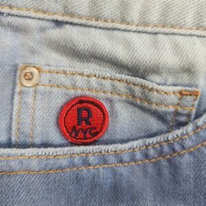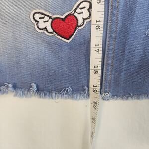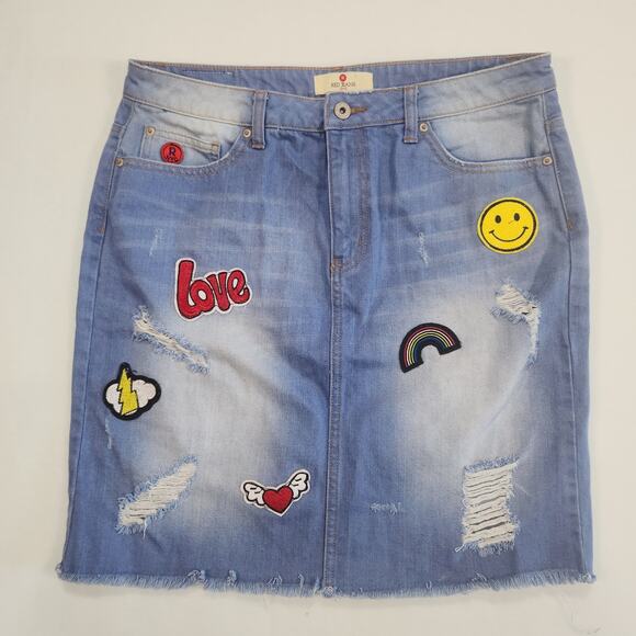 Womens Blue Jean Skirt XL Patch Red Jeans NYC