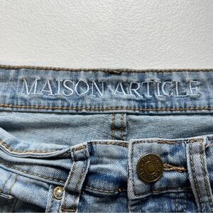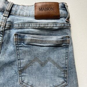 These blue jeans feature a straight leg design with a stylish distressed look, perfect for a casual day out. The light blue color adds a vintage touch, making them a versatile addition to any wardrobe.