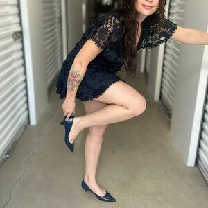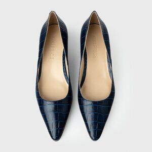 As bold as it is refined. With a rich navy croc finish and a chic kitten heel, she's a wildly gorgeous shoe that levels up any fit.