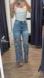 Stylish blue jeans with elegant lace detailing. Perfect for a chic and modern look.