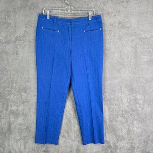 Womens Blue Larry Levine Ankle Pants Stretch Cotton Blend High Rise Size 12