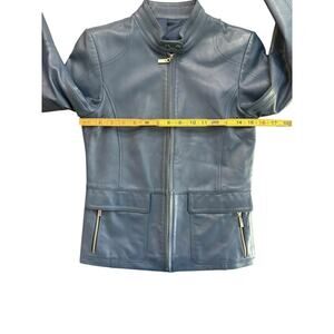 Women's Blue Leather Long Sleeves Zip Up Bomber Jacket Size 55