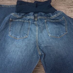 Comfortable and stylish blue maternity jeans perfect for everyday wear. Designed to provide support and style throughout your pregnancy.