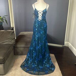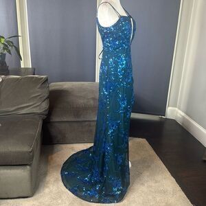 Women’s Blue Mermaid Fit Prom Party Dress SparklySequins LaceUpBack Size 2 *READ