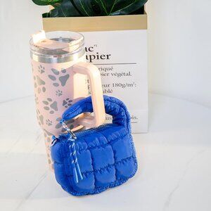 Women's Blue Mini Quilted Wristlet Pouch Cute Charm Gift Puffer Evening Handbag
