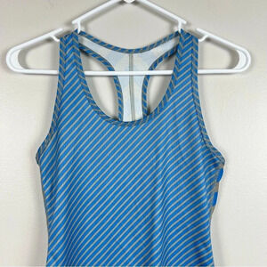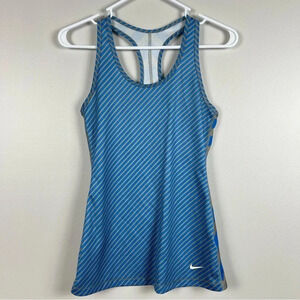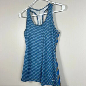 Nike Racer Blue Activewear Tank Top, Size Small, DriFit, blue & gray, lightweight and breathable. Perfect for yoga, working out, walking, running, hiking. 14" pit to pit, 25" length, SKU 375