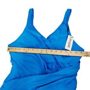 Womens Blue One-Piece Swimsuit Adjustable Straps & Ruched Front Aimage Size XL