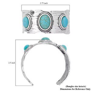 Women's Blue Oval Howlite 7" Cuff Bracelet in Silvertone