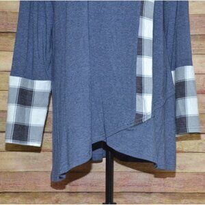 Womens Blue Plaid Long Sleeve Cowl Neck Tunic Shirt Top Size XXL Career Stretch