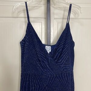 Women's Blue Rain Joan Glitter Knit Jumpsuit Navy Size Medium Spaghetti Strap