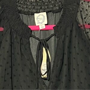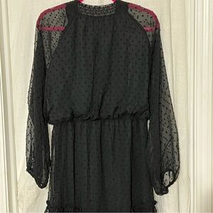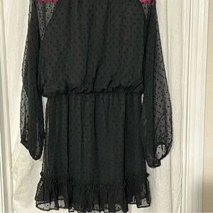 Women's Blue Rain Short Dress Ruffles Black Sheer Long Sl Elastic waist Size L