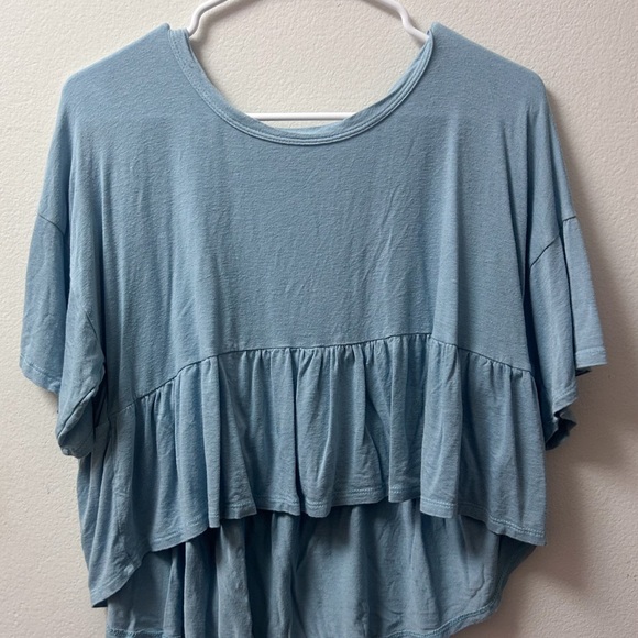 Women's Blue Ruffle Top