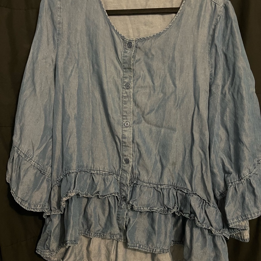 Women's Blue Ruffled Top