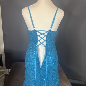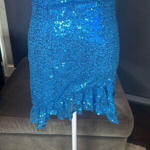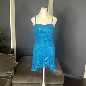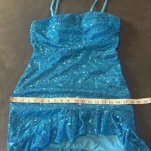 Women’s Blue Sequined Short Prom Party Homecoming Dress Ruffle Hem Size 8