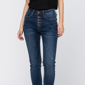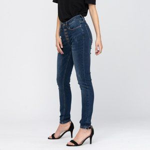 Elevate your style with these chic blue skinny jeans. Perfect for any occasion, they offer a flattering fit and timeless appeal.