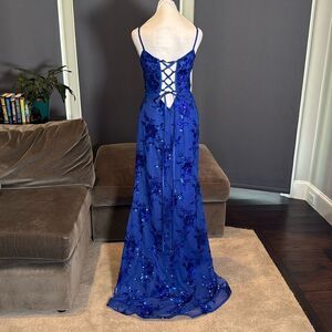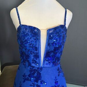 Women’s Blue Sparkly Mermaid Fit Prom Party Dress CrissCross Straps Size 2 NEW