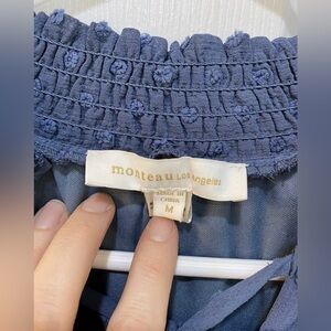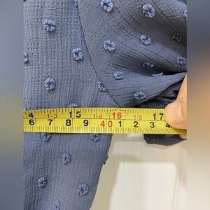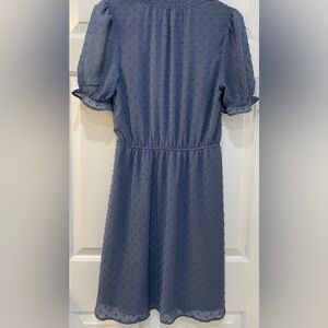 Women's Blue Swiss Dot Dress Knee Length Short Ruffle Sleeve Size M