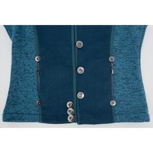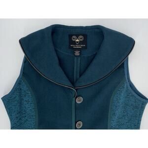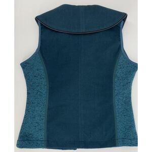 Stylish women's blue vest featuring a unique button detail. Perfect for layering and adding a touch of elegance to any outfit.