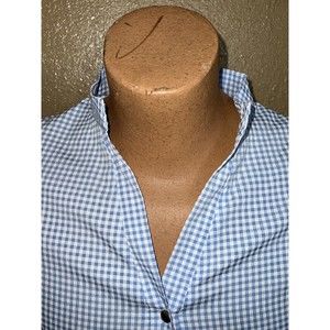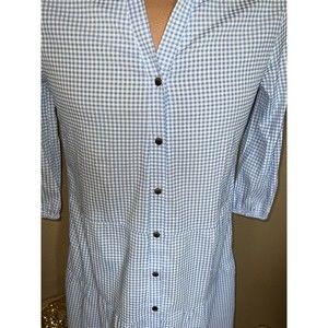 Womens Blue White Gingham 3/4 Puff Sleeve Button Up Dorothy Babydoll Dress M