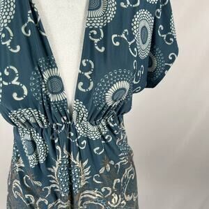 Womens Blue White Short Sleeve Dolman Stretch V Neck Blouse Top XS Estimate