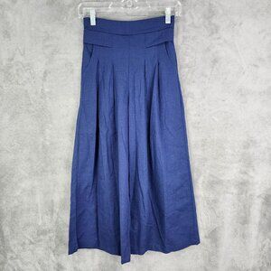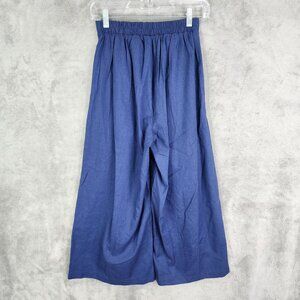 Womens Blue Wide Leg Linen Blend Culottes Pants Hi Rise Size S