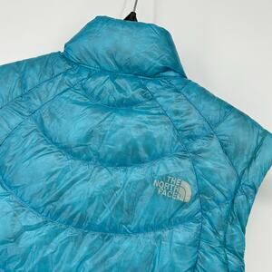 Women's Turquoise Blue Neon Yellow The North Face Summit Series 900 Lightweight Packable Goose Down Puffer Vest Sz L
