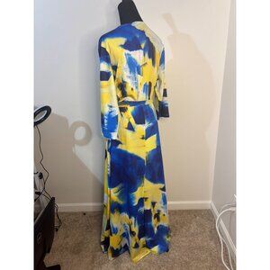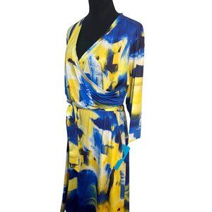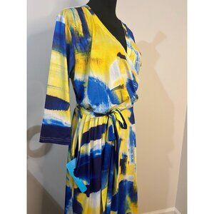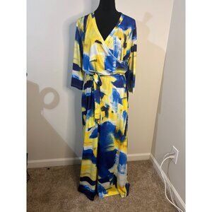 Womens Blue and Yellow Plus Size Wrap Dress With Belt NWT Size XXL
