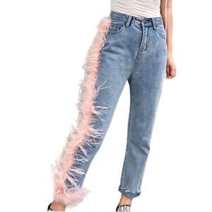 Women's Blue Distressed Ankle Length Jeans(Size Large) Zipper Closure, Faux detail.Approx measurements Waist 28" Length 33", Rise 11", Inseam 22".NWOT