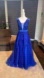 Women’s Blue Full Length Prom Party Dress with Small Train & Corset Back Size 6