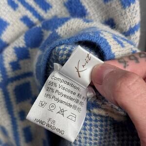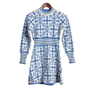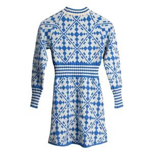 Women's Blue/White Geometric Knit Sweater Dress - Size Small