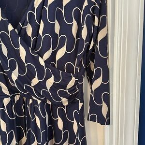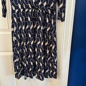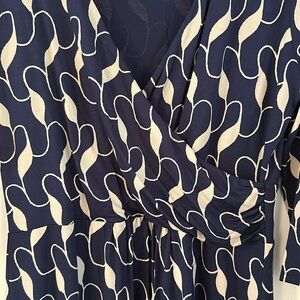 Women’s Boden Elegant Navy and Cream Patterned Wrap Dress Size 14L
