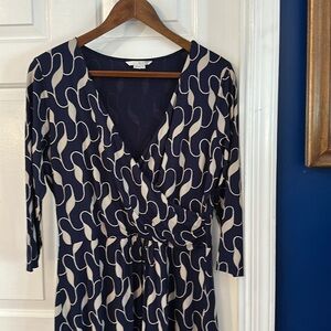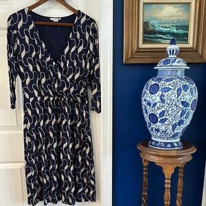 Women’s Boden Elegant Navy and Cream Patterned Wrap Dress