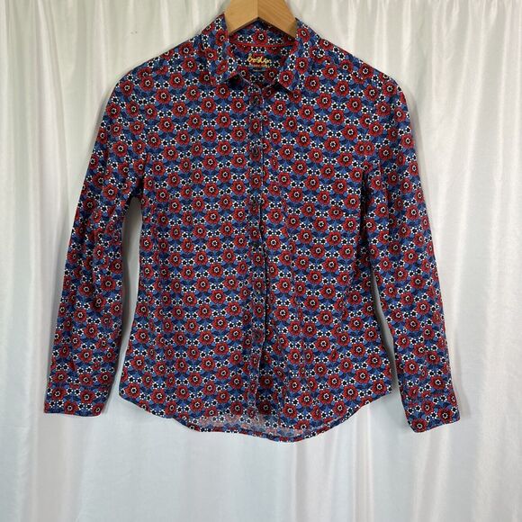 Women’s Boden Flower Top With Collar, Button Down Size Small, Blouse Classy