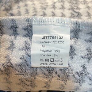 Excellent condition, 95 % polyester, 5 % spandex, 4 way stretch, cover stitch hems.