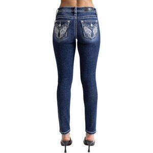 Discover the perfect blend of style and comfort with the Women's Bohemian Feathered Wings Faux Flap Pockets Mid-Rise skinny Jeans. These mid-rise, dark-wash jeans feature a unique bohemian feathered wings design and rhinestones on the back pockets that add a fun, boho vibe. The flattering skinny fit and slight fading give them a trendy, vintage look. Made from 99% cotton and 1% elastane, they’re soft, comfortable, and built to last. The classic 5-pocket style with an M leather patch makes them easy to dress up or down. Perfect for casual outings, music festivals, or weekends when you want to stand out a little with a stylish twist.