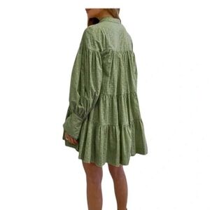 Women's Bohemian Floral Print Button Down Long Lantern Sleeve Shift Tunic Dress Casual Ruffle Swing Mini Dress