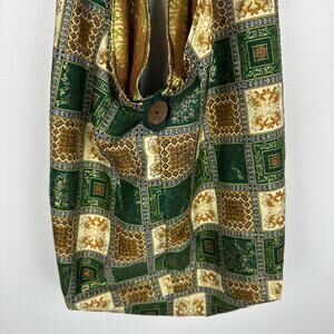 Womens Bohemian Tribal Button Closure Ethnic Green/Gold Shoulder Crossbody Bag