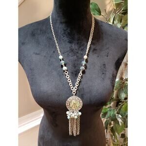 Women's Boho Abalone Style Pendant Necklace Beads Fringe Lobster Clasp