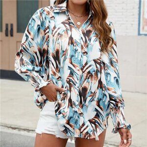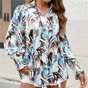 Women's Boho Blouses – Chiffon Button-Down, Long Sleeve, V-Neck