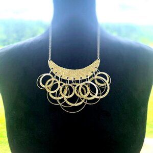 Womens Boho Chic Hammered Polished Silver tone Necklace 19" Layered Circle Necklace. Statement piece.