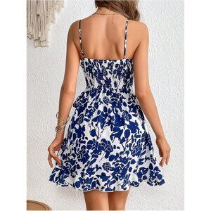 Women's Boho Floral Print Ruffle Mini Dress Wrap Tie Waist Sleeveless Casual