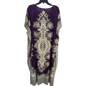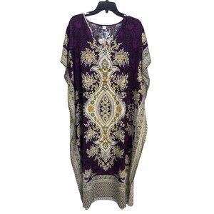 Women's Boho Kaftan Dress Purple Gold Lounge Wear One Size Beach Cover Up
