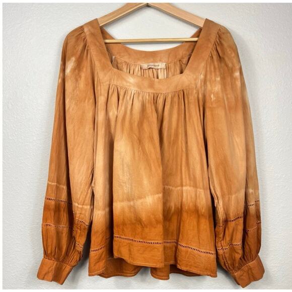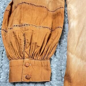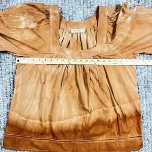 Women's Boho Long Sleeve Blouse Medium Peasant Ombré Cotton Pumpkin Cottagecore