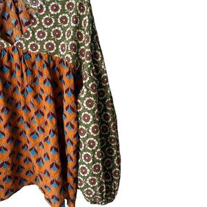 This bohemian-style top combines floral and geometric prints for a vibrant aesthetic. Crafted from a lightweight cotton blend, it provides comfort and durability.