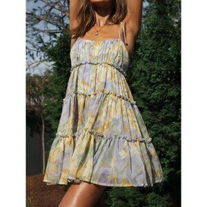 Women's Boho Mini Dress Polyester Spaghetti Strap Ruffle Square Neck