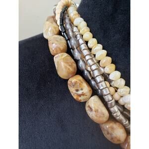 Womens Boho Multistrand Chunky Stone & Beaded Collar Necklace Jewelry w/ Lobster.